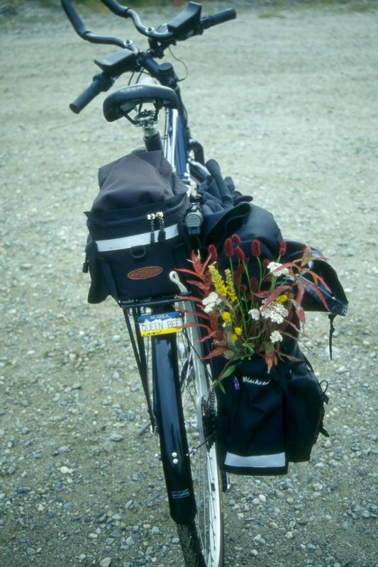 Bouquet on bike.
